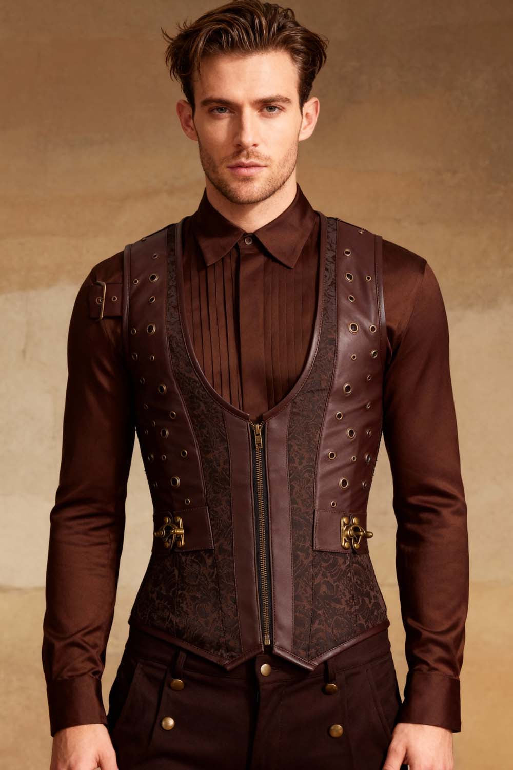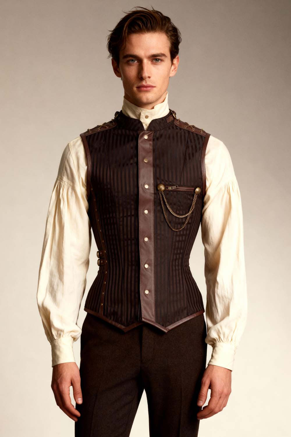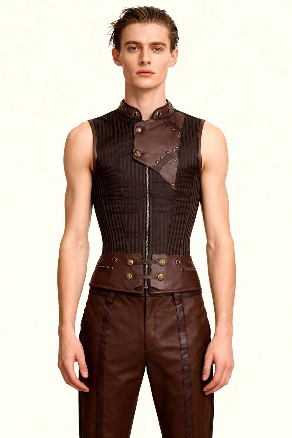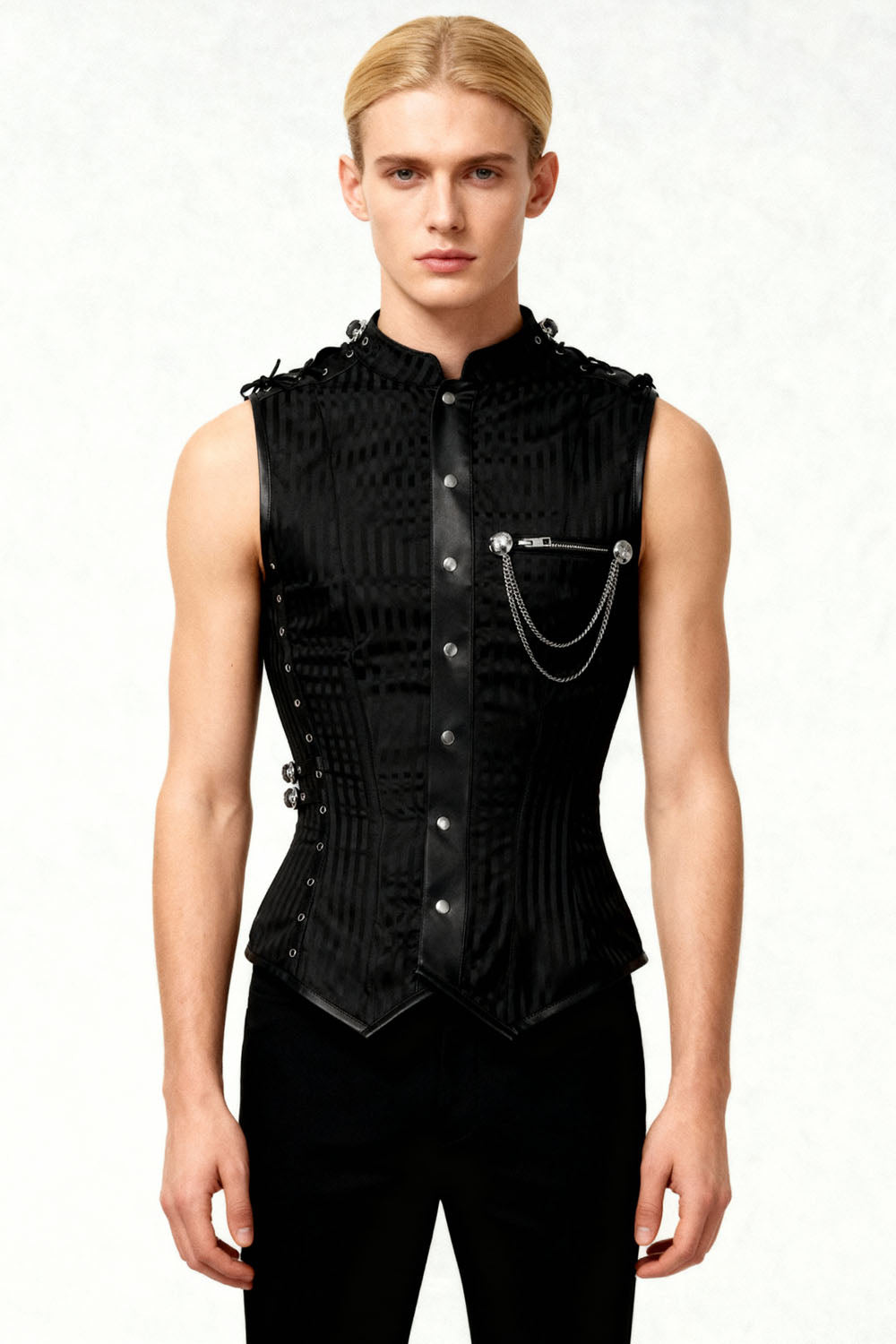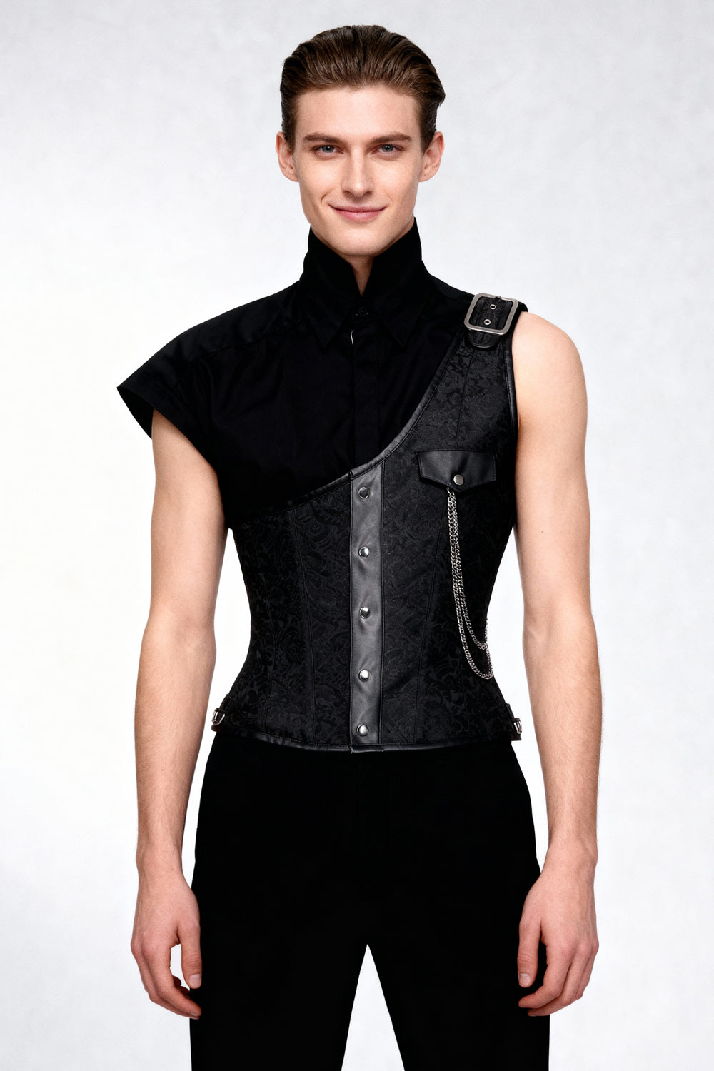Our Men’s Range is designed for contemporary and alternative fashion retailers seeking bold, structured menswear with strong visual identity. Inspired by gothic and steampunk aesthetics, this collection brings corsetry-inspired tailoring into modern men’s fashion.